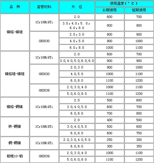 ◆鎧裝熱電偶推薦使用溫度