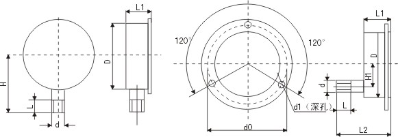 軸向帶前邊不銹鋼壓力表