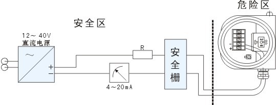 電源:24V·DC;無負載時變送器可工作在12V·DC,zui大為40V·DC。