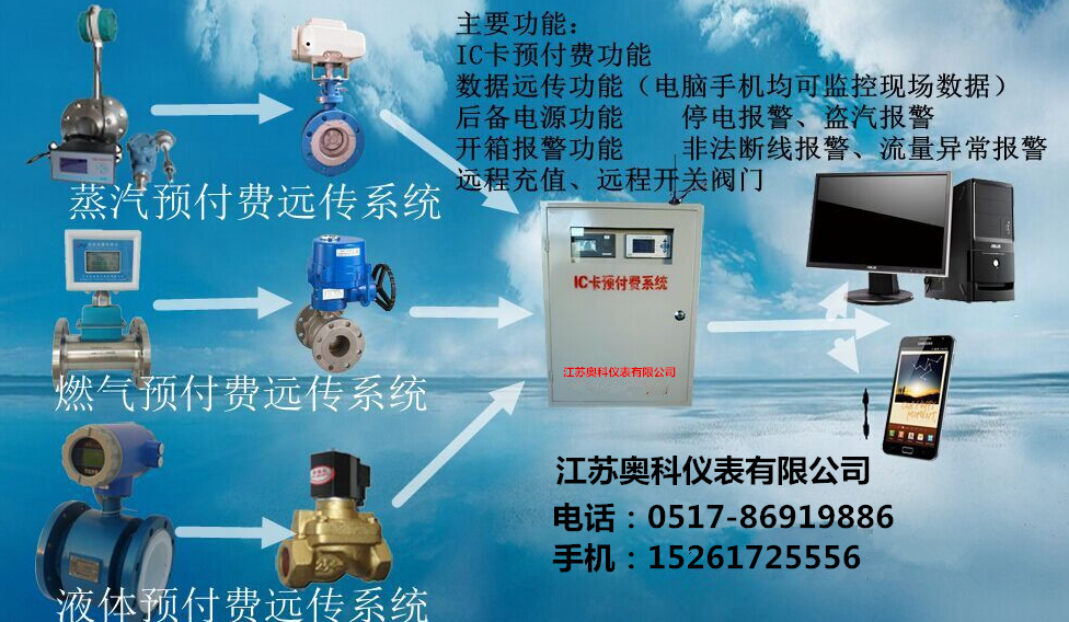 江蘇奧科儀表有限公司完善了一整套具有初級(jí)功能、中級(jí)功能、高及功能的IC卡蒸汽計(jì)量預(yù)收費(fèi)系統(tǒng),蒸汽預(yù)付費(fèi)控制系統(tǒng)解決了企業(yè)以上問(wèn)題,而且由于先充值后用氣,使得供氣企業(yè)提前拿到流動(dòng)資金周轉(zhuǎn),可用于投資或存款利息等,都對(duì)企業(yè)產(chǎn)生了良好的經(jīng)濟(jì)效益。以下是江蘇奧科儀表有限公司IC卡預(yù)付費(fèi)系統(tǒng)的主要功能和特點(diǎn)請(qǐng)進(jìn)行參閱。奧科儀表http://m.ahtsaf.com.cn