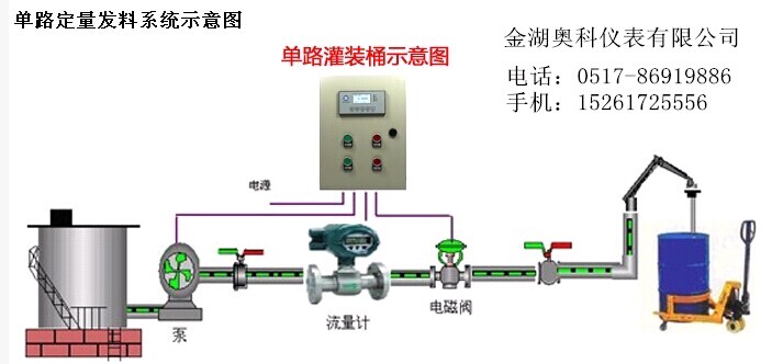 江蘇奧科儀表有限公司提供本方案主要根據(jù)流量計(jì)反饋給定量控制儀的脈沖流量信號(hào),當(dāng)流量累計(jì)流量達(dá)到設(shè)定的數(shù)值(定量值),定量控制儀會(huì)給電磁閥門或泵一個(gè)開關(guān)信號(hào),已達(dá)到對(duì)閥門、泵的啟動(dòng)和關(guān)閉控制。實(shí)現(xiàn)對(duì)加料  的自動(dòng)和手動(dòng)控制。該系統(tǒng)精度高,操作簡(jiǎn)單,可現(xiàn)場(chǎng)校準(zhǔn)目前很多企業(yè)都會(huì)用到或者是都需要改進(jìn)的項(xiàng)目之一,它把具有操作簡(jiǎn)便易學(xué),顯示直觀,手動(dòng)控制流量或自動(dòng)控制流量相結(jié)合等特點(diǎn)。特別適用于油田摻油、摻水、摻藥、配料、定量注水及各種液體的定量控制。目前一些現(xiàn)在仍采用人工操作罐裝/打料,同時(shí)也不想投入太多成本,就想提高工作效率的企業(yè)建議采用本系統(tǒng)。